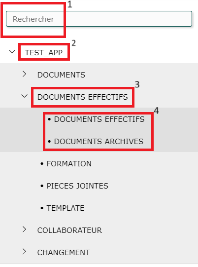 1. Rechercher dans le menu : Champ recherche groupe/famille/table : il est possible de rechercher une famille, une table ou un groupe en saisissant les premières lettres de la famille ou de la table dans le champ « rechercher » en haut à gauche de l’écran.