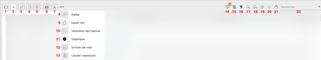 Au-dessus de la grille, différentes fonctionnalités permettent de gérer les enregistrements de la grille.