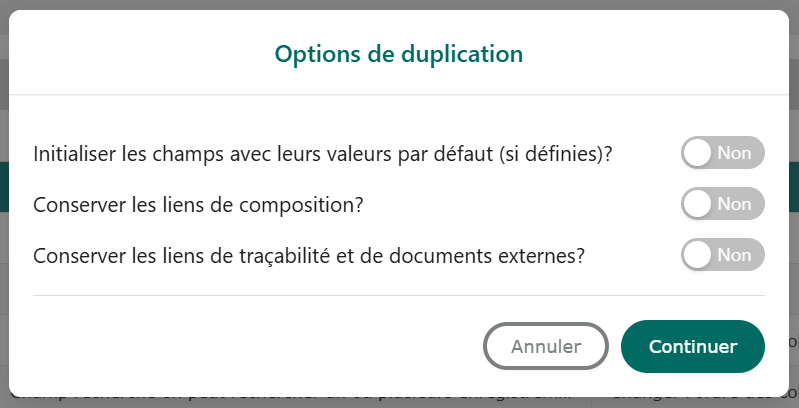 Après avoir cliqué sur « Dupliquer », une fenêtre pop-up s’ouvre demandant si l’on souhaite :