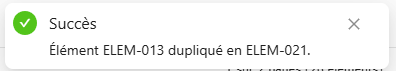 Un message en bas à droite de la fenêtre indique que la duplication de l’élément a été effectuée avec succès. L’enregistrement est dupliqué.
