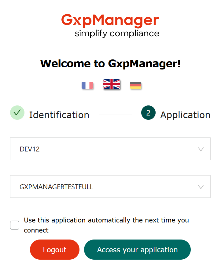 The “Go to your application” button takes you to the home portal of your chosen application.