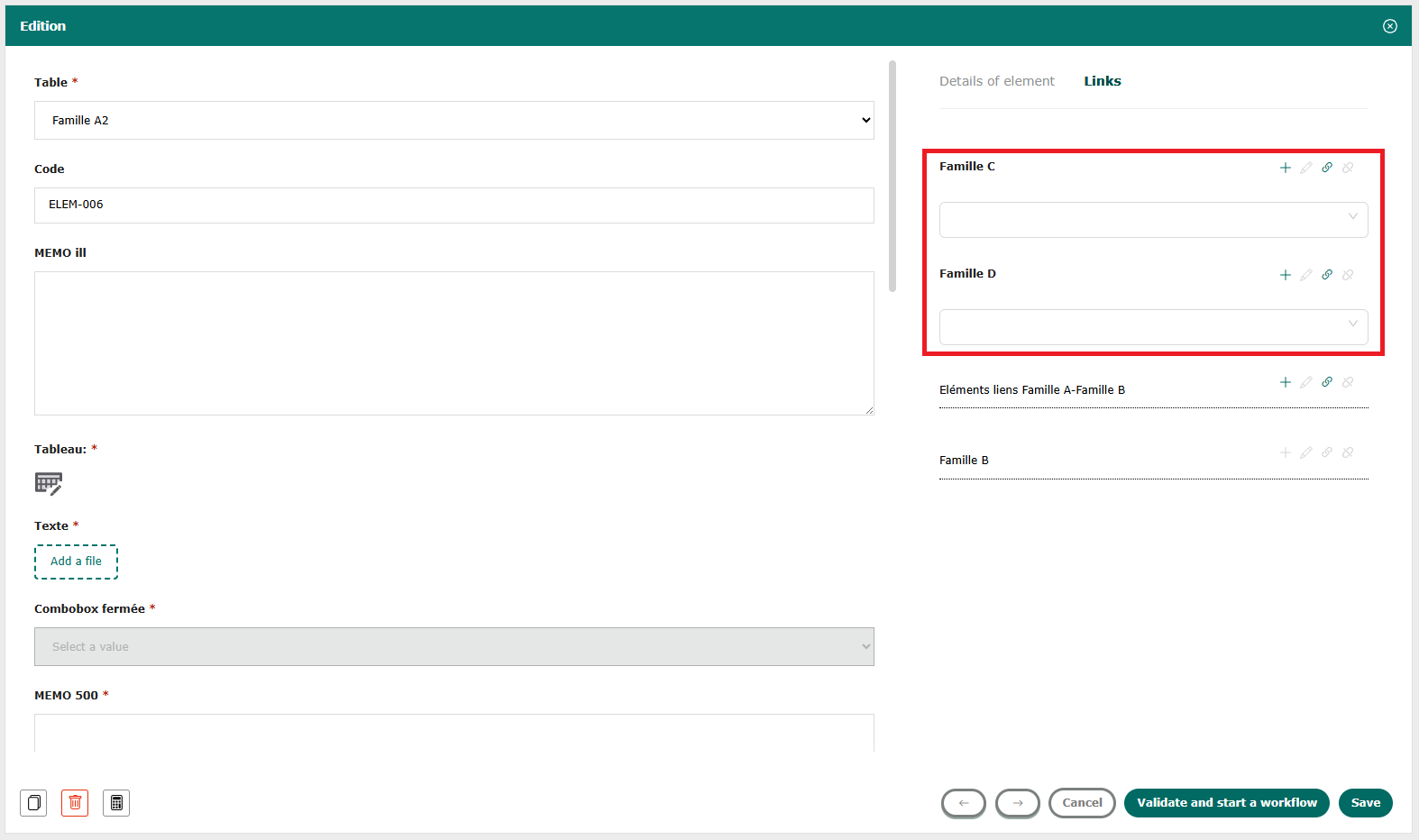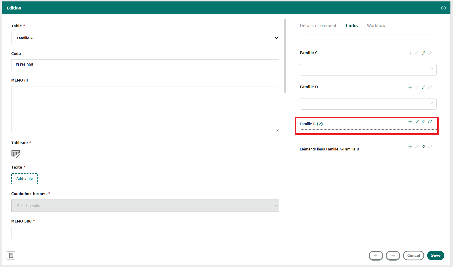 • Link :if the record you wish to link already exists in the linked table, open the drop-down list and select its code.