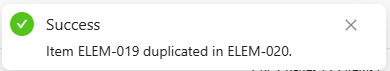 A message in the bottom right-hand corner of the window indicates that the element has been successfully duplicated. The record is now duplicated.
