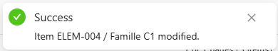 - A message at the top of the main grid indicates that the element has been modified.