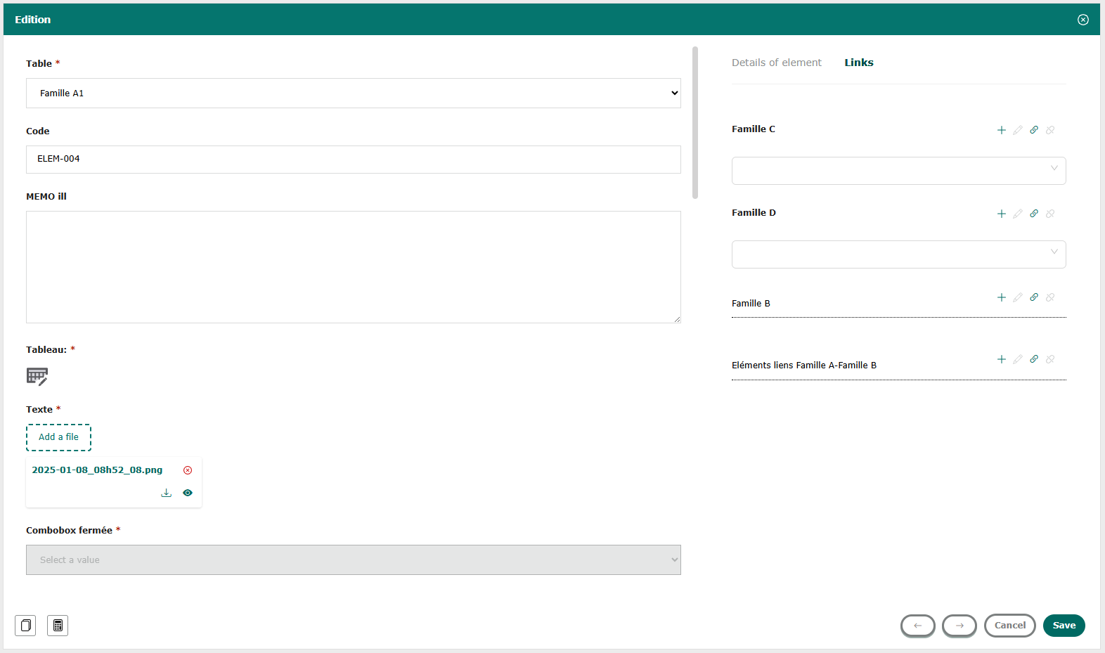 Modification of a record is subject to user rights management.