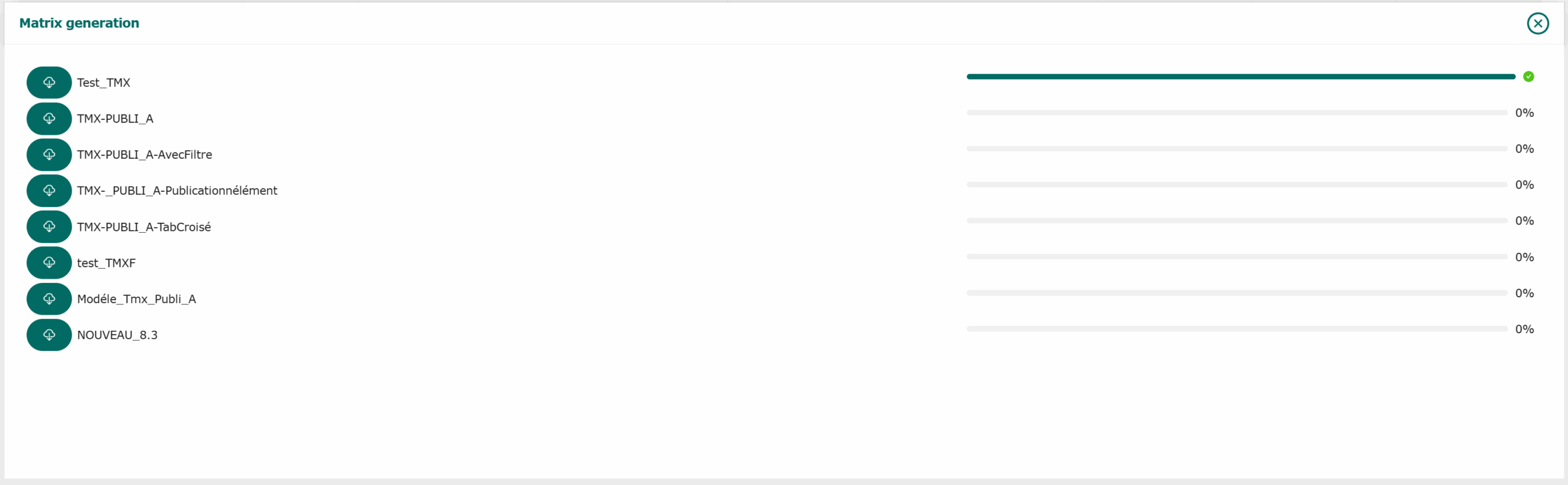 A download bar shows you the current status. When 100% is reached, a green tick appears, indicating that the matrix has been generated.