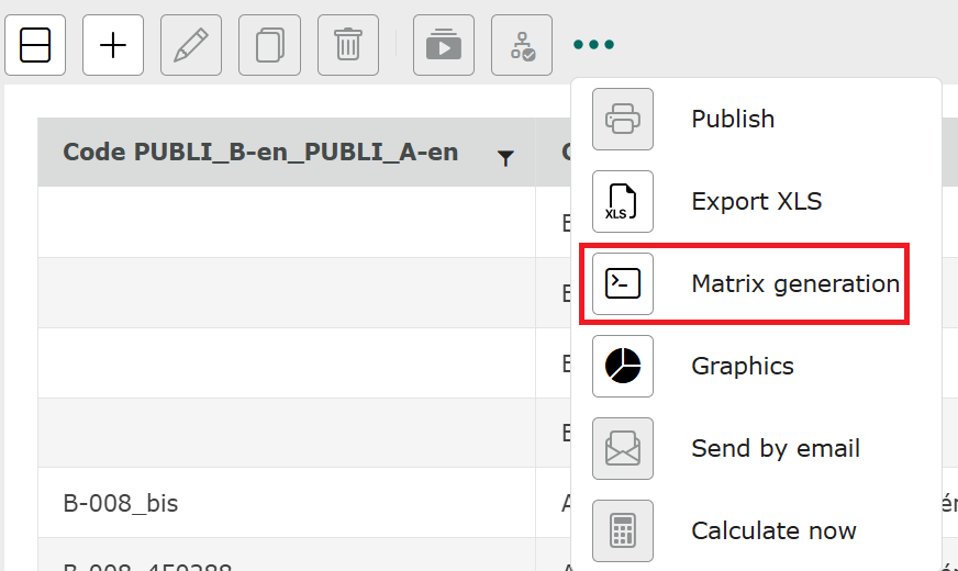 To select a matrix, click on the “…” icon in the toolbar. ![]()