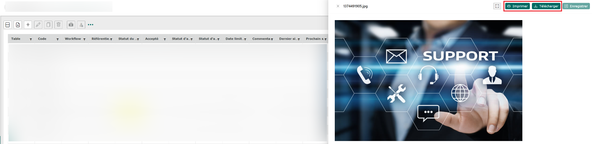 Il est possible d’imprimer ou télécharger un fichier depuis la grille :