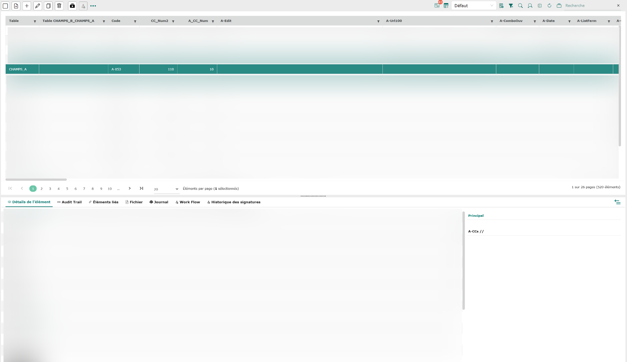 - L’audit trail : cet onglet permet de visualiser l’audit trail de l’élément sélectionné.