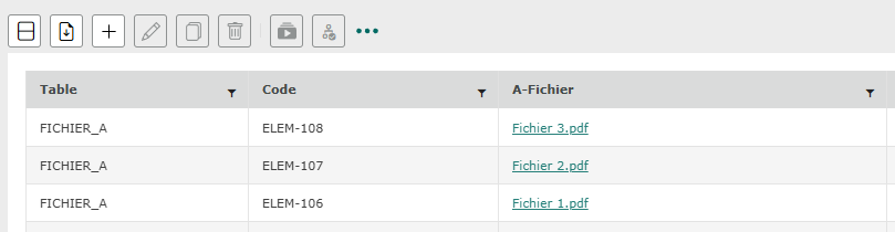 Depuis la grille principale, une fois les éléments sélectionnés et après avoir validé, les éléments seront crées pour chaque fichier/image importé.