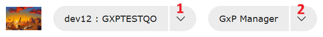 En cliquant sur la flèche à côté du nom de l’application (dans le header, en haut à gauche de la page), vous pouvez accéder aux applications disponibles. (1)