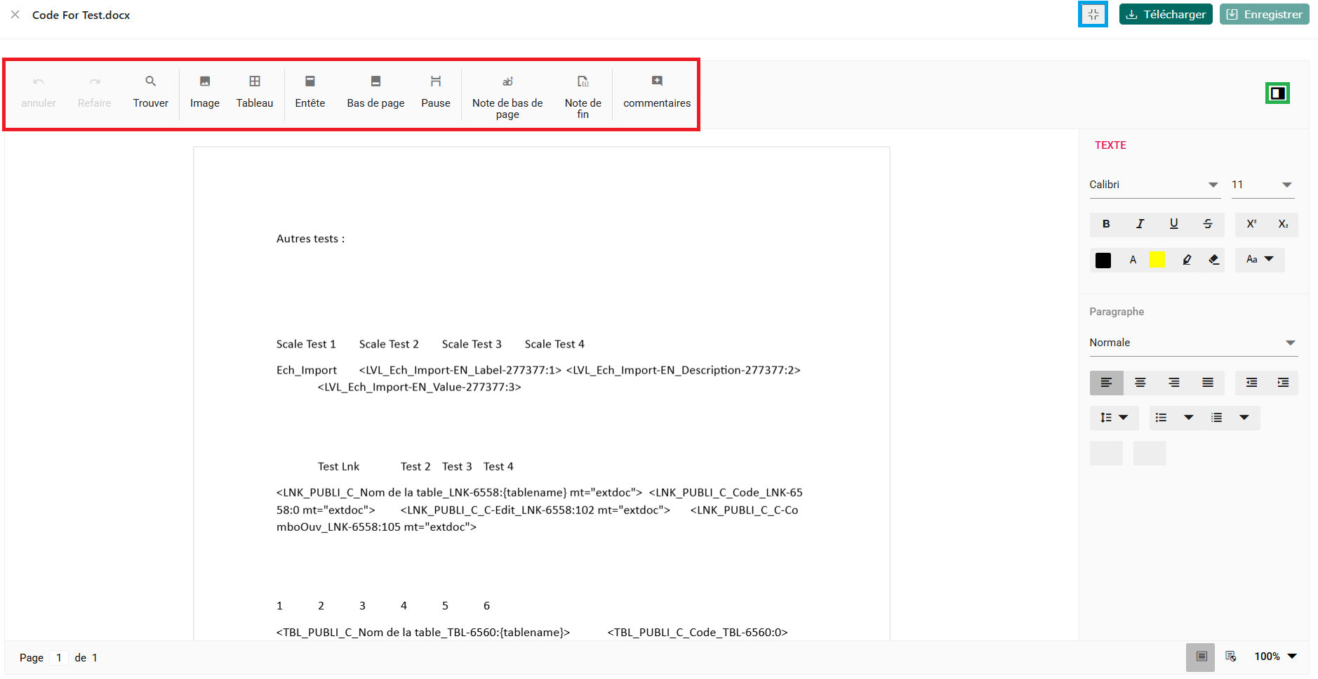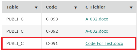 Dans la table ou vous avez choisi d’insérer le document, on trouve le code ainsi que le document publié enregistré dans l’application, accessible via un lien.